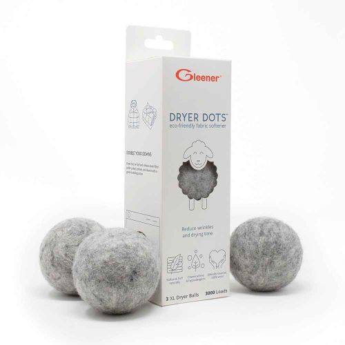- Ethically sourced 100% wool Gleener Dryer Dots soften fabrics with their gentle tumbling motion