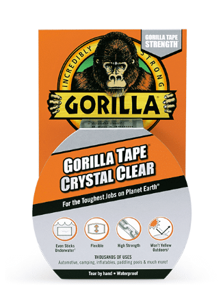 - With an extra thick adhesive layer and tough ultra-clear backing, Gorilla Clear Repair Tape is the ideal solution for almost any project, indoors and out!