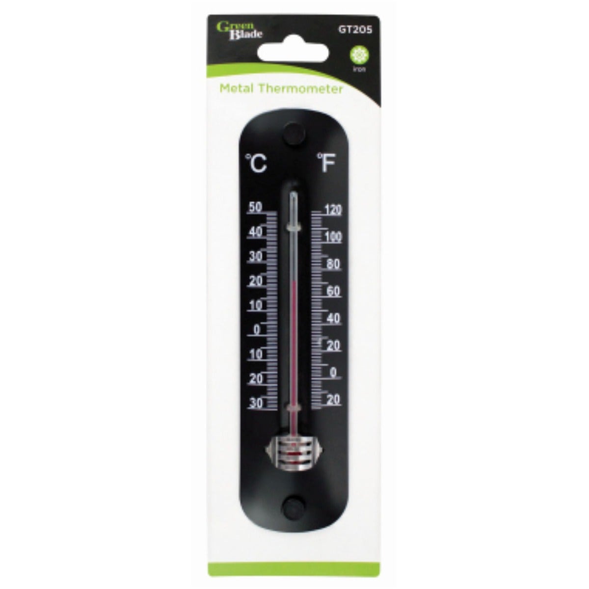 The Green Blade Black Metal Thermometer is a reliable and stylish tool for measuring temperature in various settings, whether it’s your garden, home, workplace, or school. With a clear temperature range from -30°C to 50°C (-22°F to 122°F), this thermometer ensures precise readings with 1°C (2°F) divisions. Its durable black metal design ensures long-lasting use, making it a versatile and essential accessory for any environment.