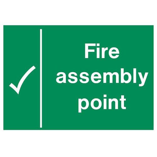 Green PVC Scripted Fire Assembly Point Sign - 300mmx200mm