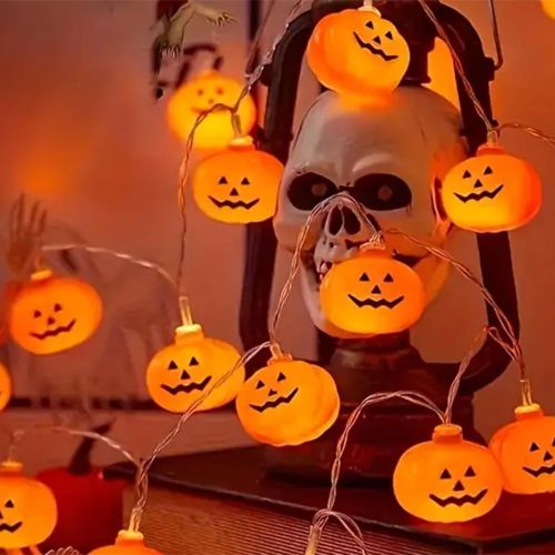 Light up your spooky celebrations with the Halloween Pumpkin LED String Lights 200cm. Featuring 10 glowing pumpkin lanterns, this festive garland is perfect for creating a warm and eerie atmosphere at Halloween parties, trick-or-treat events, or seasonal home décor. With a total length of 200cm, these battery-powered lights are easy to hang across walls, windows, doorways, or mantels. Designed for both indoor and sheltered outdoor use, they bring a touch of glowing charm to any Halloween display.