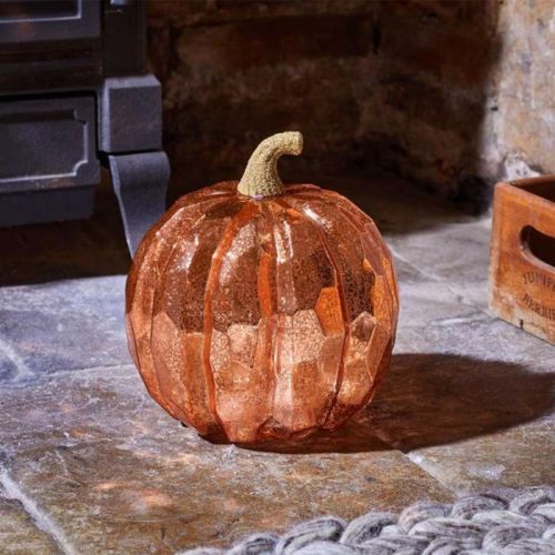 Create a warm and inviting seasonal atmosphere with the InLit Golden Pumpkin Large. Crafted from rose gold effect glass, this elegant lantern radiates a soft glow with its 20 integrated warm white LEDs. At 20cm tall, it makes a striking centerpiece for mantels, shelves, or dining tables, bringing sophistication and autumnal charm to your décor. Battery powered for convenience and designed for indoor use, it’s an effortless way to illuminate your home with seasonal beauty.