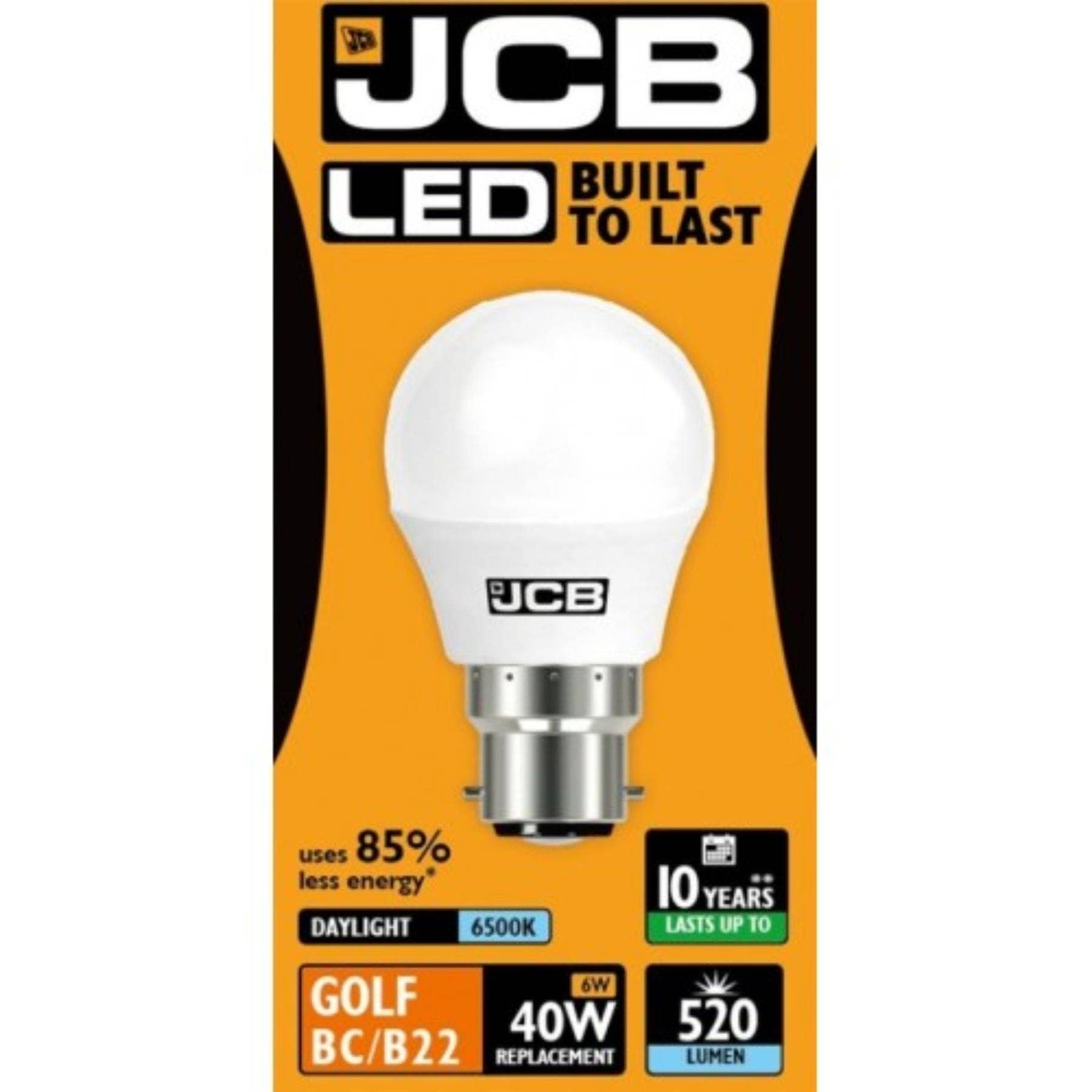 JCB 6W LED B22 Golf Ball Bulb 520 Lumens Cool White 40W Equivalent Energy Saving Lamp
