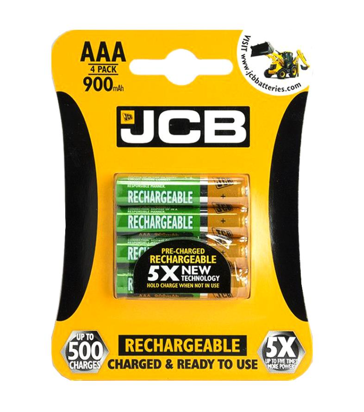 JCB Rechargeable Batteries AAA 900Mah 4 Pack