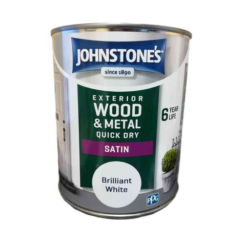 Johnstones Exterior Wood & Metal QD Satin Paint - Brilliant White 750ml