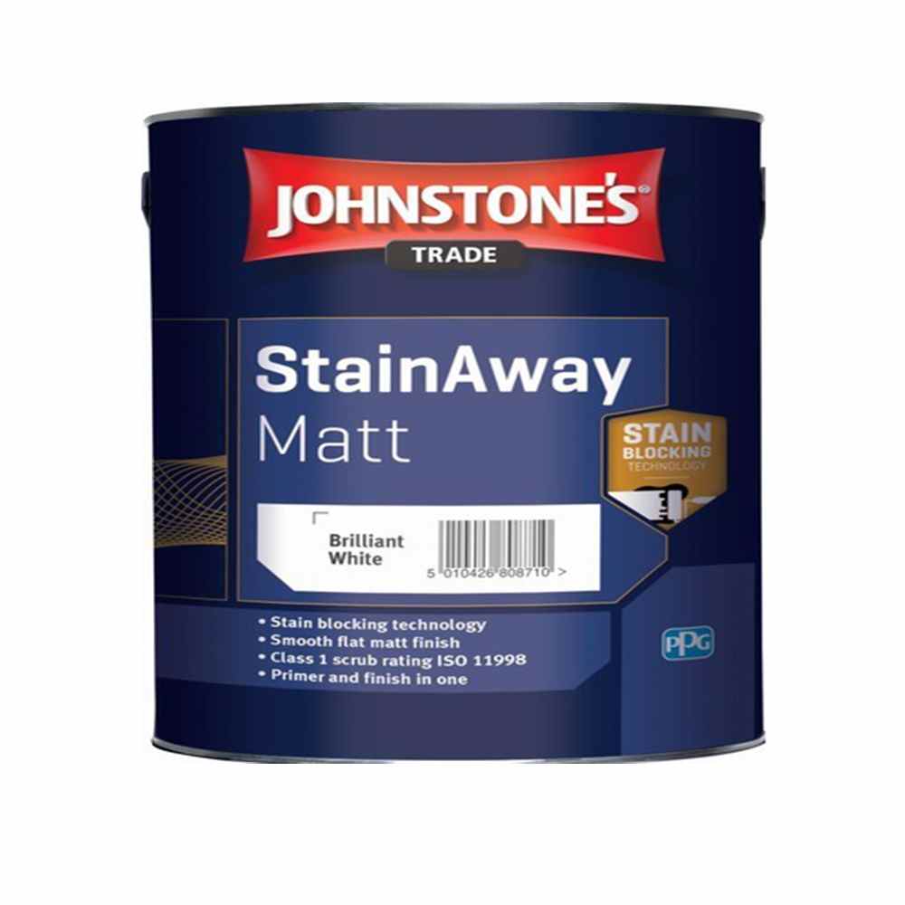 Johnstones Trade Stain Away Matt Paint - Brilliant White 2.5L