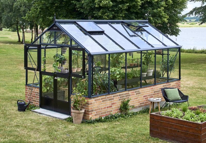 Juliana Premium Greenhouse Anthracite / Black 9' x 14' Toughened Glass - Dwarf Wall
