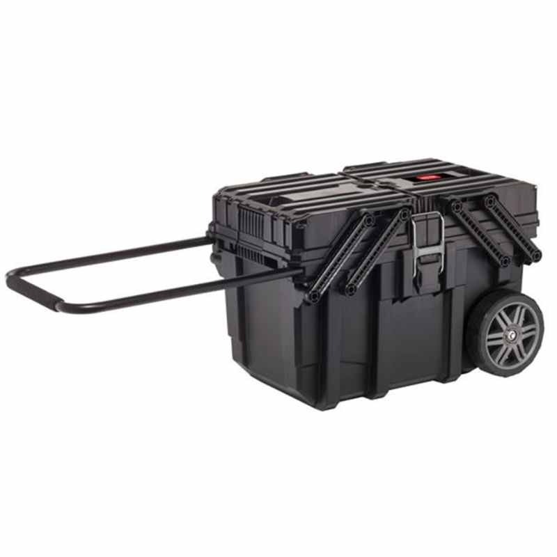 - The Keter Roc Wheeled Job Box is the perfect accessory for any professional who requires a large mobile storage cart to help them move from one job to another. It has a protective water and dust seal, 7in all terrain rubber wheels and a soft grip, retractable metal handle.