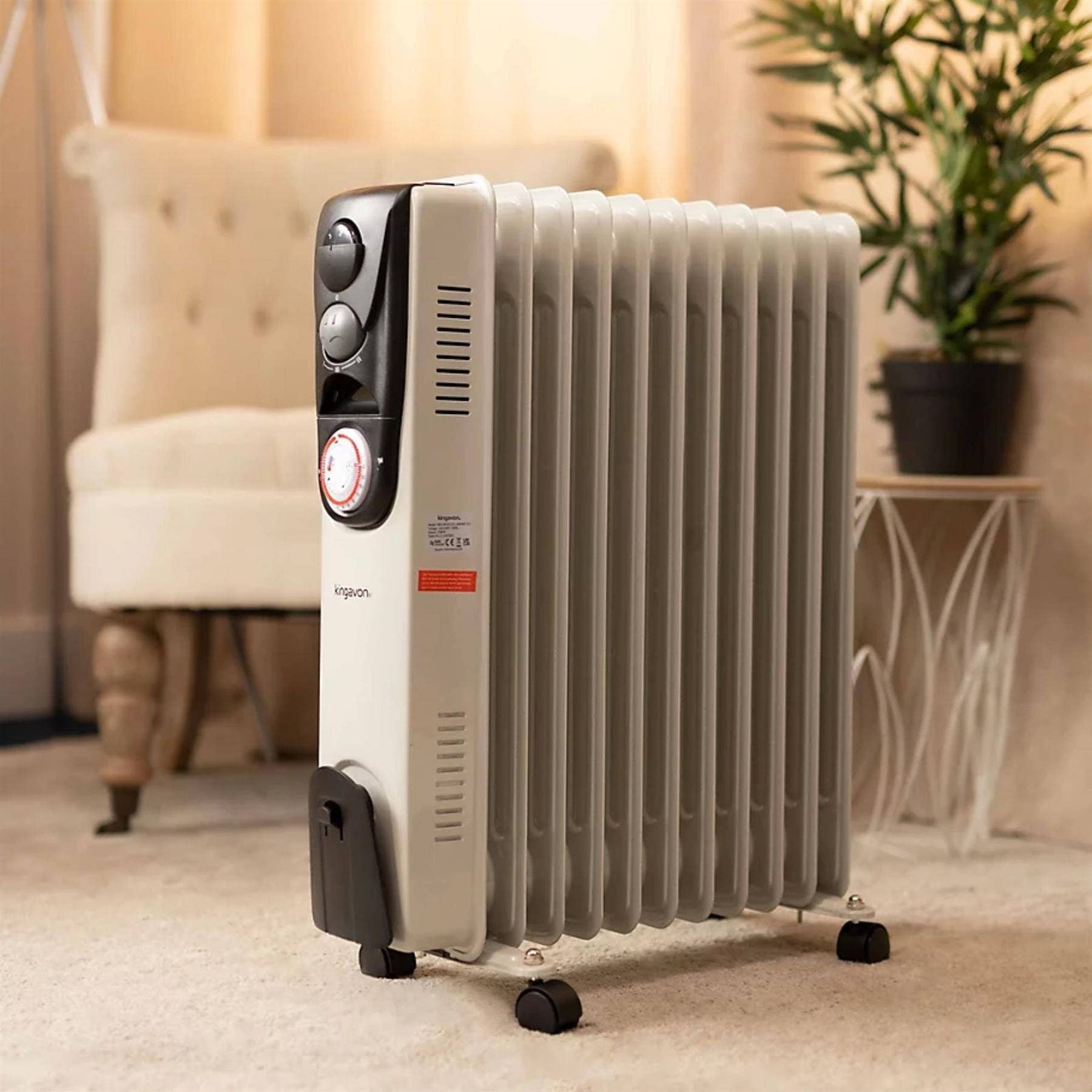 Kingavon 11 Fin Electric Oil Filled Radiator – 2500W Portable Heater with 3 Heat Settings, Timer and Safety Features