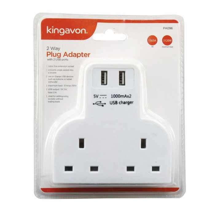 Kingavon 2 Way Plug Adaptor (With 2 USB Ports)