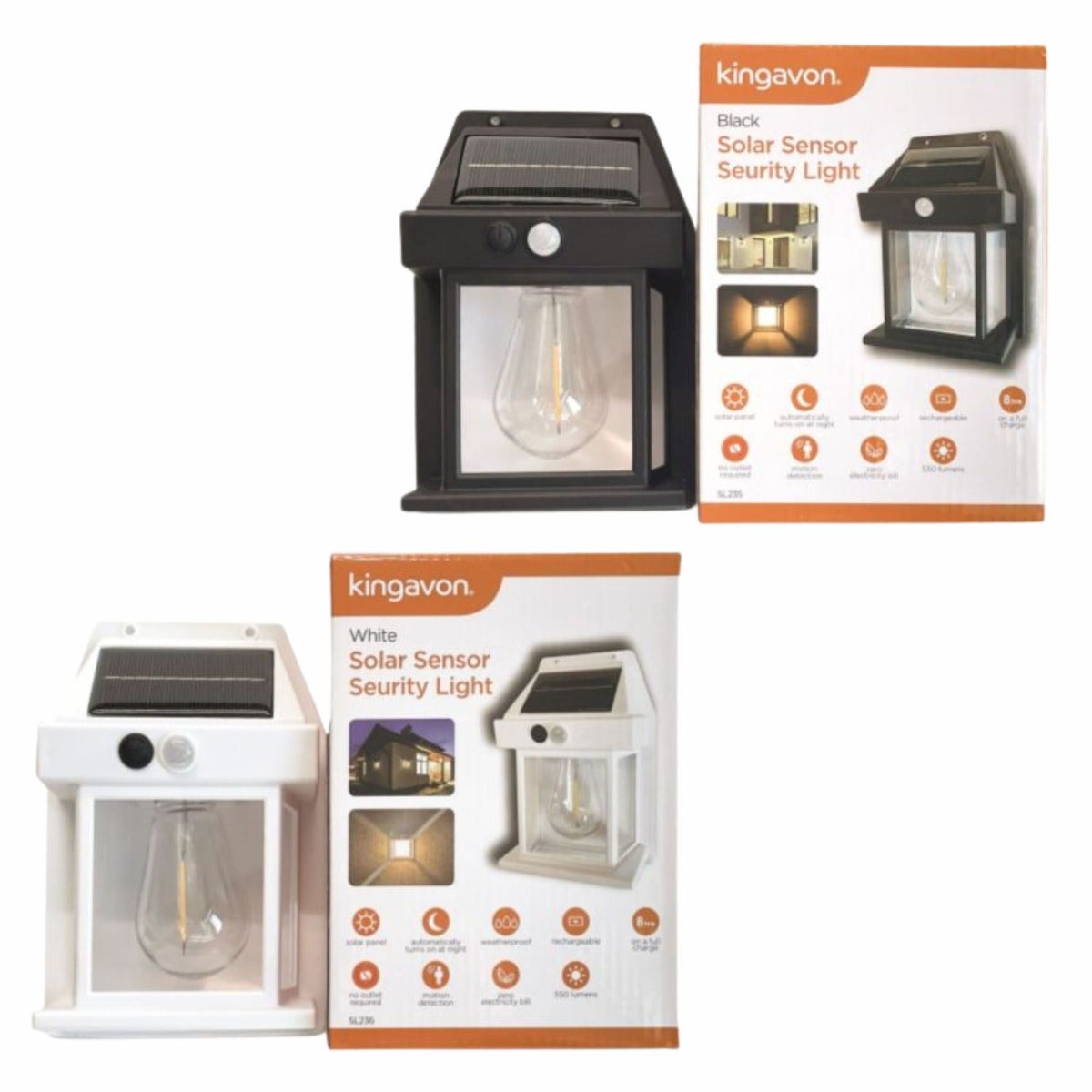 Ideal security lighting for outdoor areas, this energy saving light is manufactured with a 5.5V solar panel, 0.5W LED filament style bulb & has a PIR sensor range of 3-5m with a 120° angle.