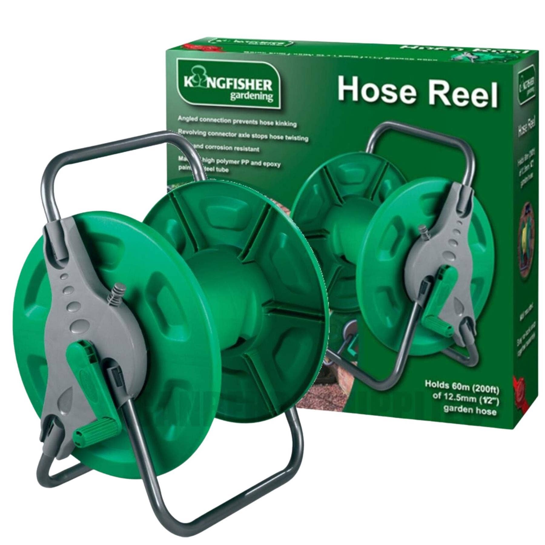 Kingfisher Wall Mounted Hose Reel – Stores Up to 60m Half Inch Hose with Rust-Resistant Steel Frame