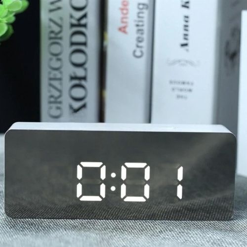 A stylish, multifunctional bedside companion that combines practicality with modern elegance. This compact 4-in-1 clock is more than just a timekeeper. With an integrated mirror display, alarm, temperature reading, and snooze function, it’s the ideal bedside or desktop accessory for any modern home or office. Crafted for convenience, the large white LED-lit LCD display shows time, date, and temperature clearly, day or night. Adjust brightness to suit your space, use the built-in mirror to check your look, and wake gently with the handy snooze button. Whether you're an early riser or a late snoozer, this clock ensures you stay on schedule and in style.