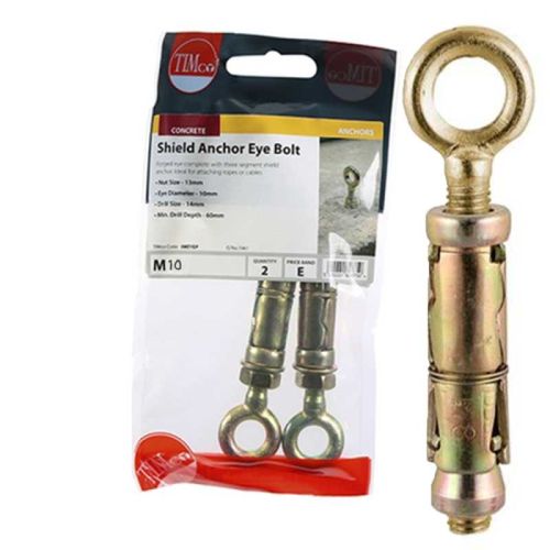 Timco M10 ZYP Shield Anchor Eye Bolts - Pack Of 2