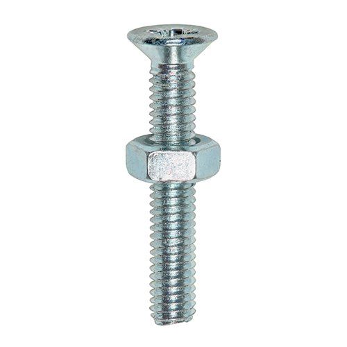 - Countersunk machine screw with hex full nut ideal for general light duty bolting applications where a flush finish required.