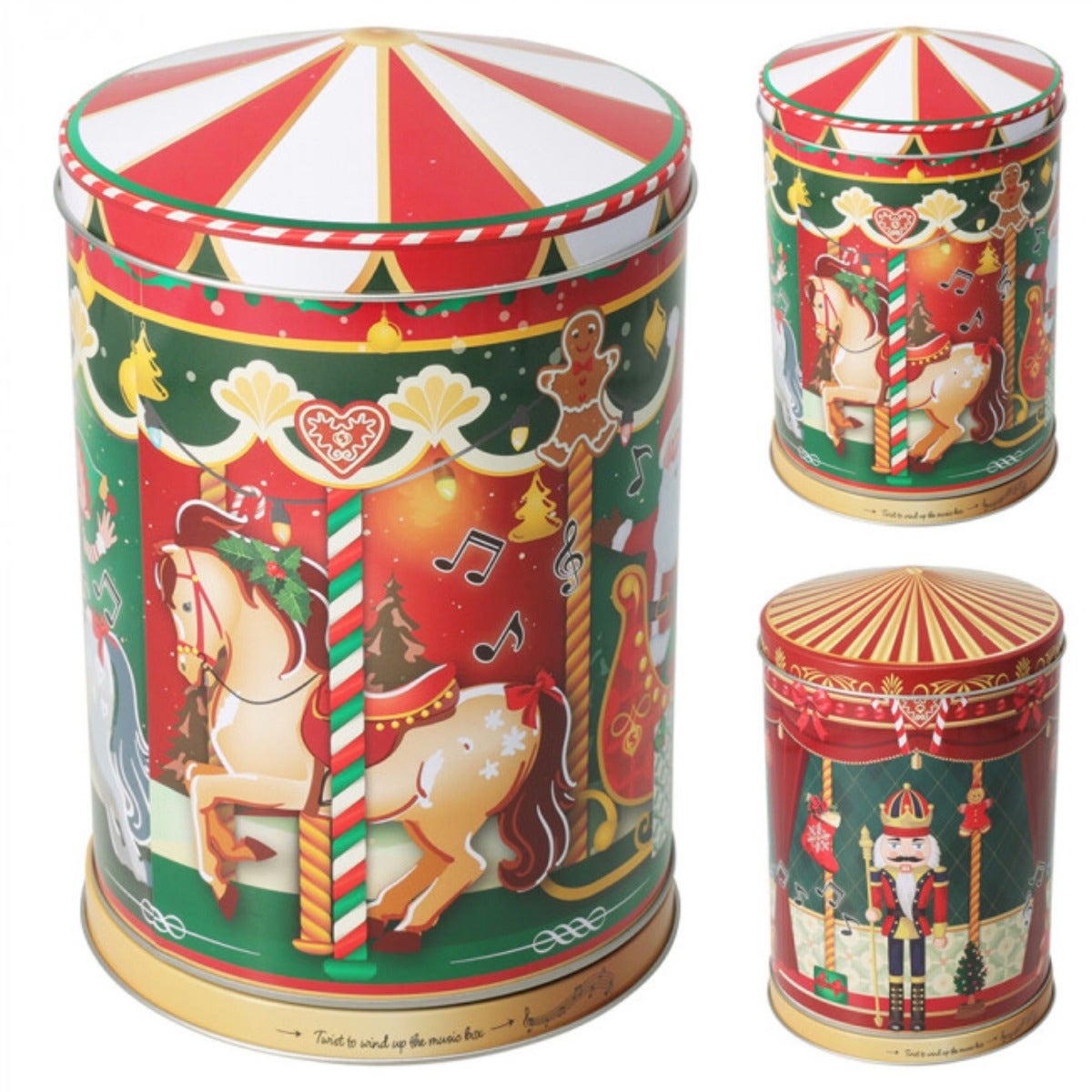 Beautifully shaped like a traditional fairground carousel, this tin brings character and charm to your kitchen or living space.