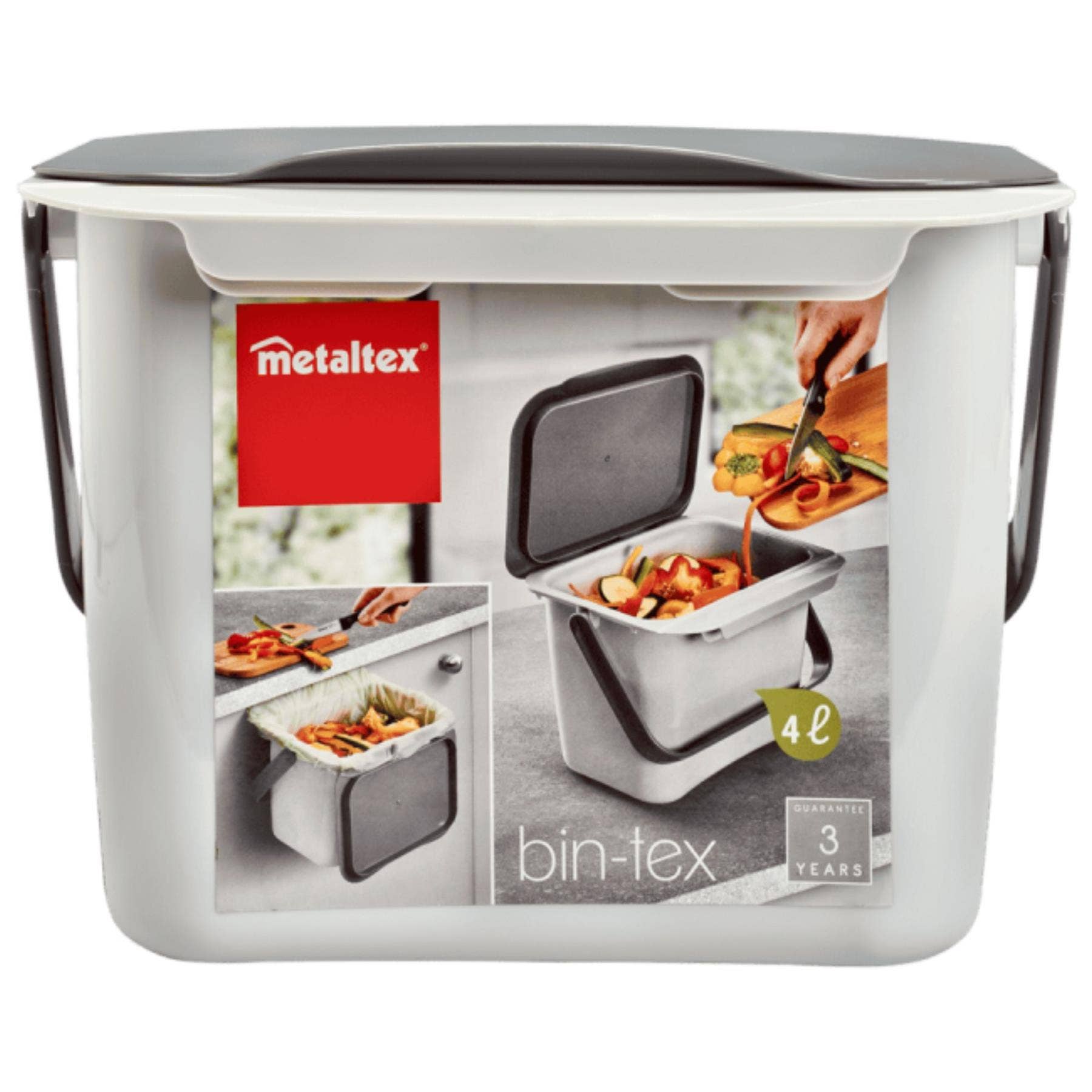 Metaltex Organic Waste Bin Caddy with Lid – 4L Kitchen Compost Bin for Cupboard or Drawer Mounting