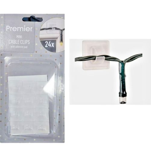 Mini Self Adhesive Cable Clips – Clear Plastic Hooks for Christmas Lights and Decorations 2cm I 24 Pack