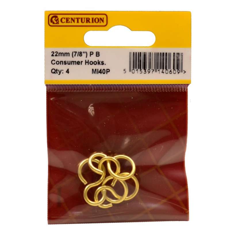 Centurion Brassed Consumer Hooks - 22mm Pack Of 4
