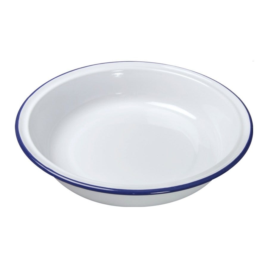 Falcon Oblong Enamel White / Blue Pie Dish - 28cm