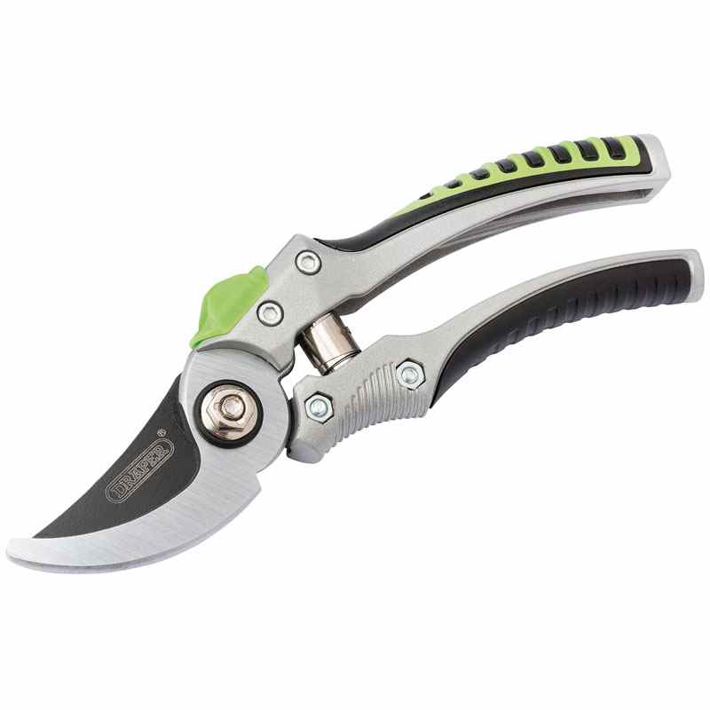 - Aluminium alloy handled secateurs with non-slip grip. The SK5 high carbon steel blades have a non-stick coating giving a silky smooth operation. Spring loaded handles and thumb-lock help secure blades in the locked position.