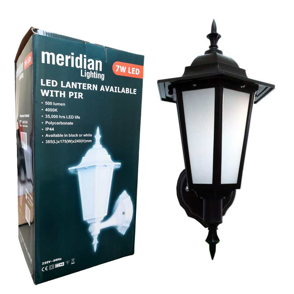 Meridian 7W Black Outdoor Wall Mounted LED Lantern