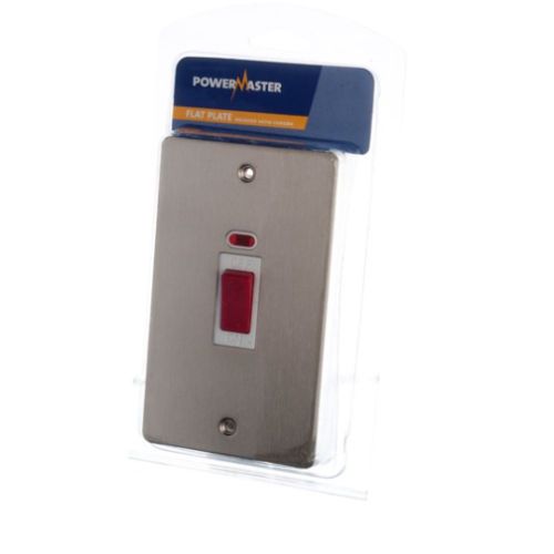 Powermaster Brushed Satin 45 Amp Double 2 Gang Double Pole Cooker Switch With Neon