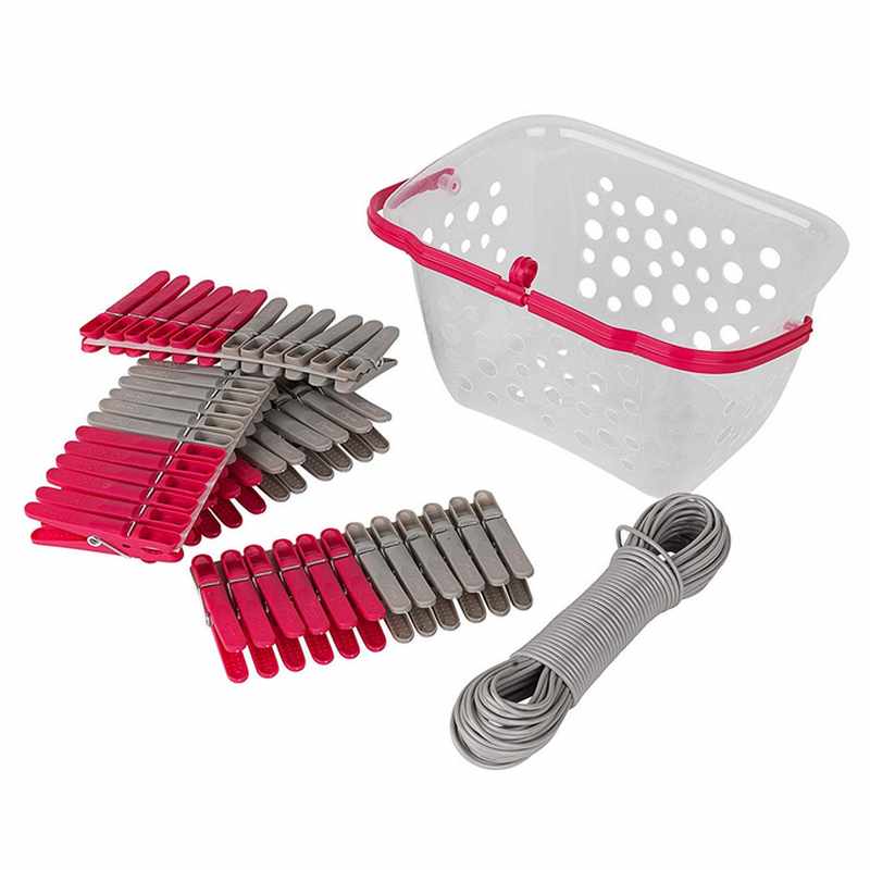 - Includes: Clothes pegs, Clothes line and Peg basket
