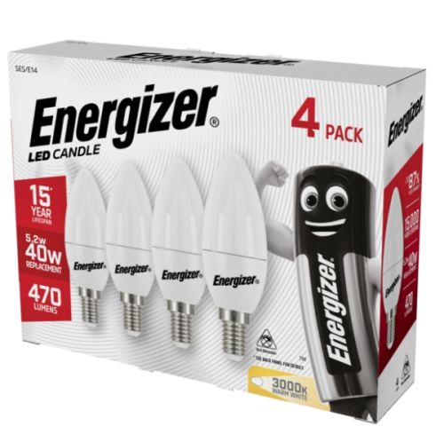 Energizer 5.2W LED Opal Candle SES Lightbulbs - Pack Of 4