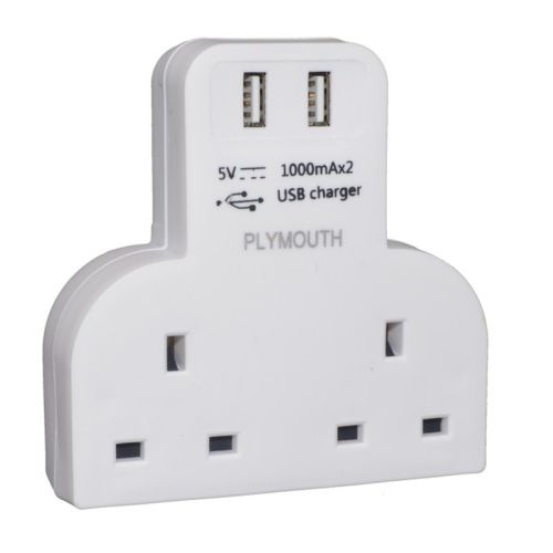 Plymouth 2-Gang T Shaped Adaptor With 2 X USB - 2.1A