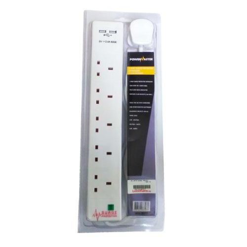 PowerMaster 5 Way Surge Protected Extension with 2 USB Outlets