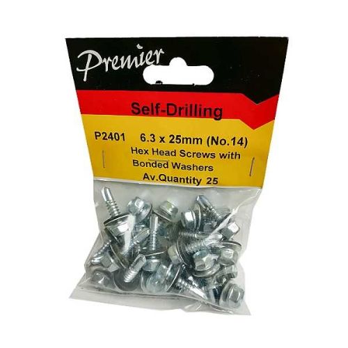 Premier Self-Drilling Hex Head Screws - 6.3 x 25mm (No.14) - Pack Of 25
