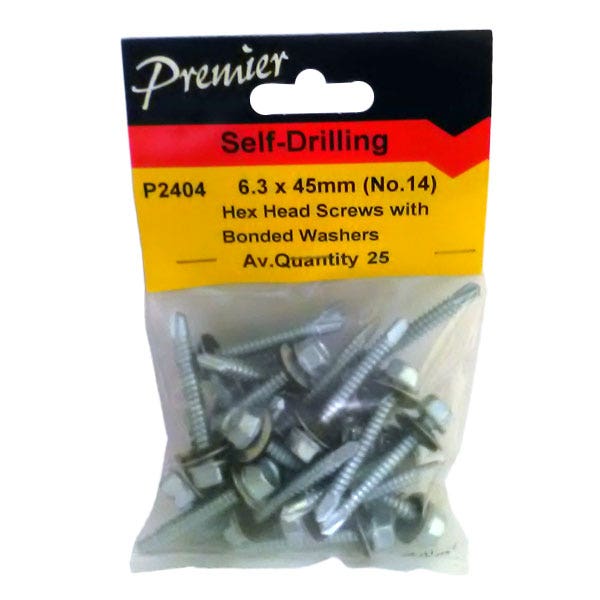 Premier Self-Drilling Hex Head Screws With Washers - 6.3 X 45mm (No.14) - Pack Of 25