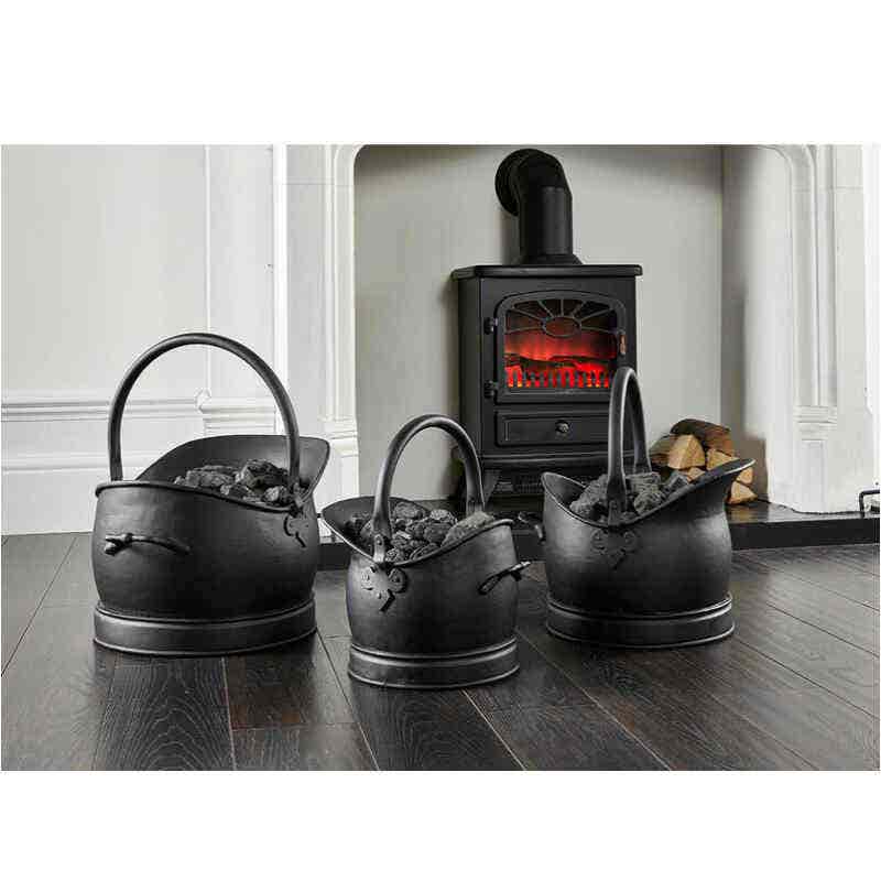 Crafted from a combination of robust steel and solid nickel, these charming scuttles have been inspired by traditional period designs. The body of the buckets has been finished in a sleek midnight black. Thes buckets come complete with a hinged upper handle, fitted to the base with classic fleur de lys brooch work on either side, and an integral back handle for ease of movement. A truly classic that is bound to add practicality and style to any fireside.