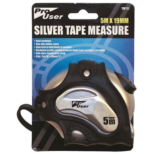 Pro User Silver Auto Lock Tape Measure - 5m x 19mm