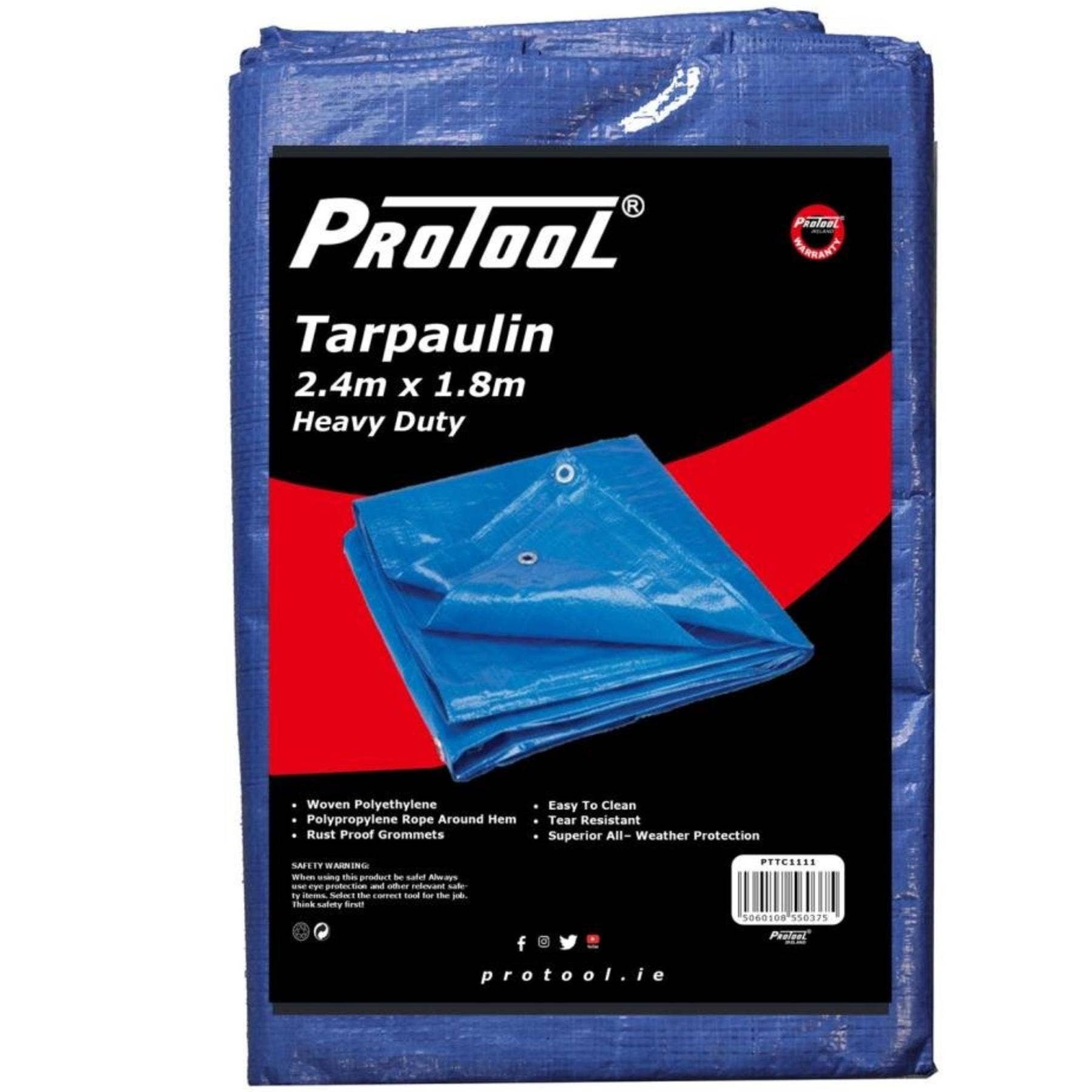 Protool Heavy Duty Tarpaulin 2.4m x 1.8m – Waterproof Multi-Purpose Cover
