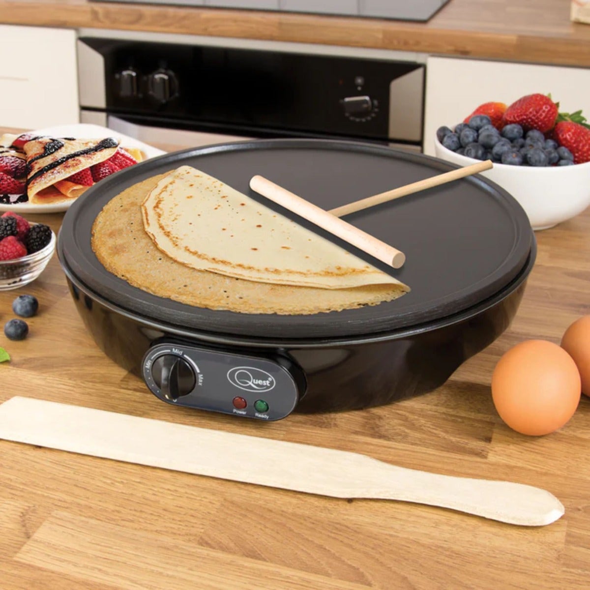 The Quest 30cm Electric Pancake & Crepe Maker is the ultimate tool for breakfast lovers, bringing restaurant-quality results straight to your kitchen. Whether it’s a stack of fluffy pancakes or delicate, thin crepes, this versatile appliance will turn your mornings into a gourmet experience.