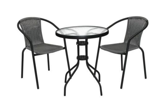 - Table 60cm diameter x 70cm high. Chairs 51 x 56.5 x 77.5cm