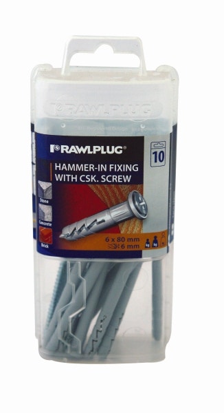 Rawlplug Hammer In Fixing & Screw 6 x 80mm - 10 Pack