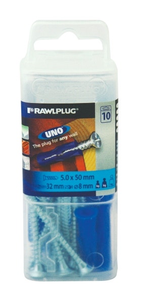 Rawlplug Uno Plug & Screw Blue 5.0 x 50mm - 10 Pack