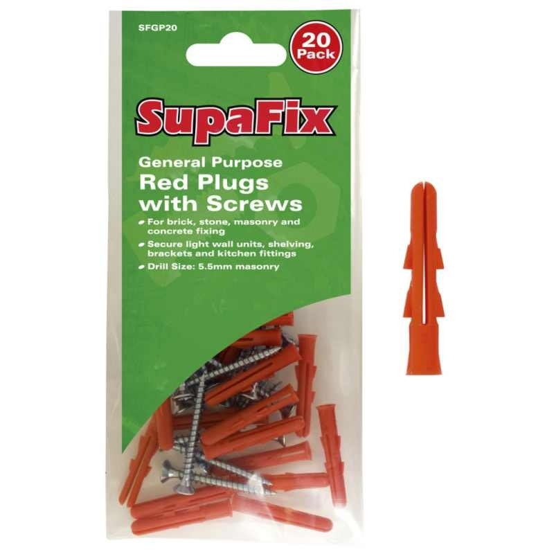 SupaFix General Purpose Plugs with Screws Red Pack 20