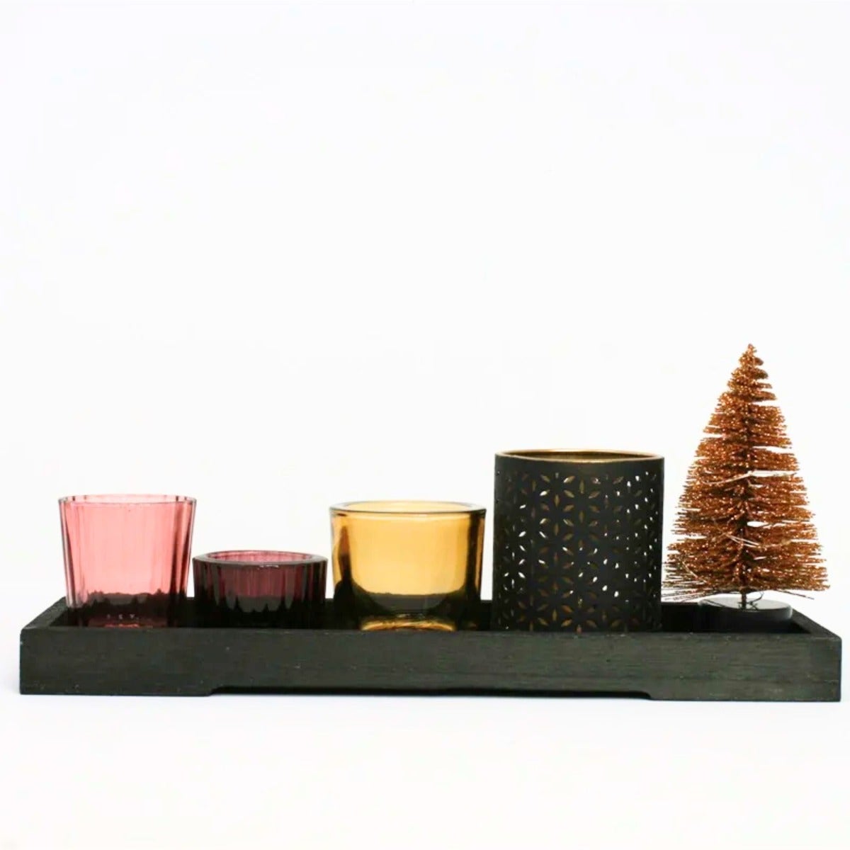 Red Tree Candle Display Tray - Festive Candle Holder for Holiday Decor