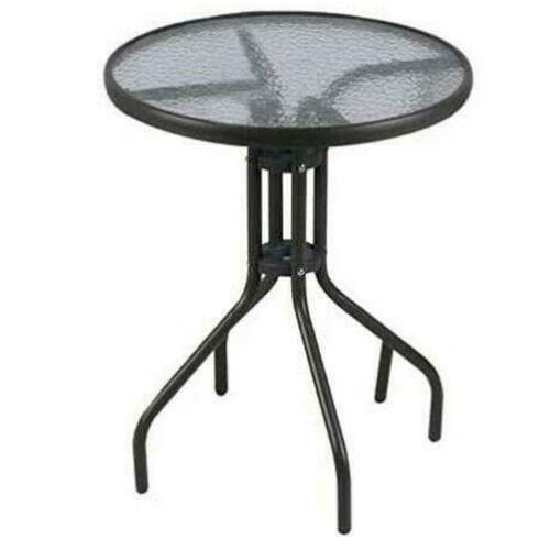 Garden Round Patio Table With Tempered Glass Top - 60cm