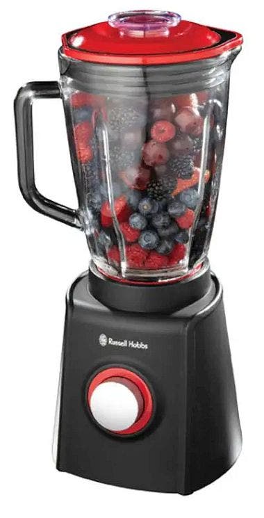 - Powerful 600 W blender has a stylish matt black finish with red accents
