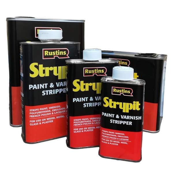- Rustins new formula Strypit is a non-caustic dichloromethane-free gel suitable for removing multiple coats of paints and varnishes applied to wood, metal, glass, stone and masonry surfaces.