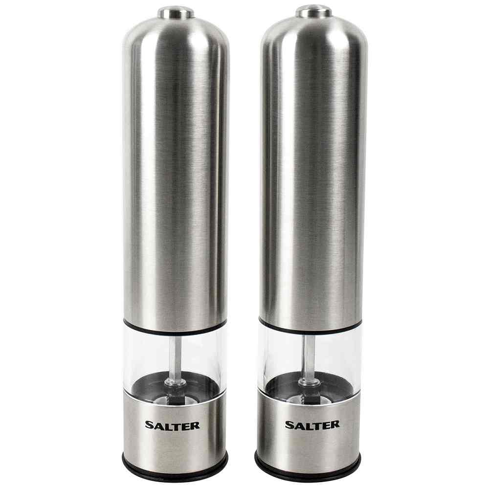 - The classic and timeless design paired with the unparalleled quality of Salter makes these Stainless-Steel Electronic Mill Set a must-have.
