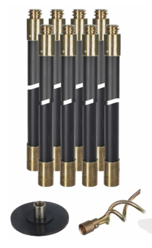 - Set contains 8 rods, double worm screw, 4" plunger.