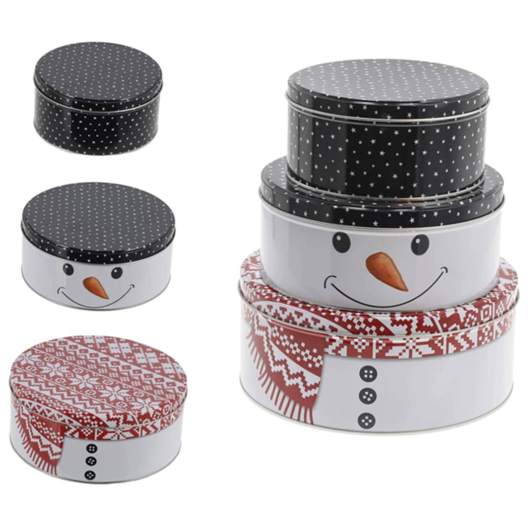 Snowman Cookie Jar Set of 3 I Round Metal Christmas Storage Tins for Biscuits and Treats