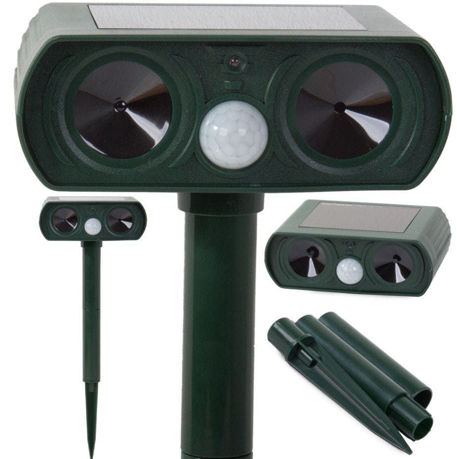 - Solar ultrasonic animal repeller with infrared motion sensor Repels animals: Moles Voles Field mice Dogs and cats Forest animals and many others.