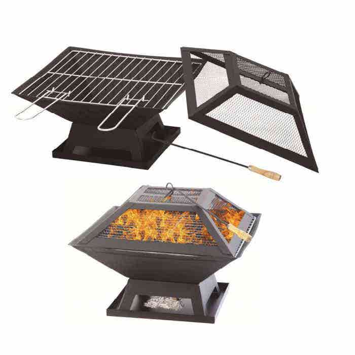 This easy to assemble durable fire pit is manufactured from a robust steel construction with ash collecting tray,